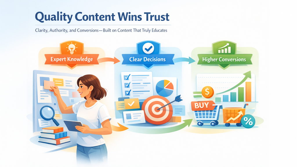 Here are some key reasons that will surely prove to you why content quality matters and why search engines are emphasizing more on improving the content quality and clarity by 2026.
